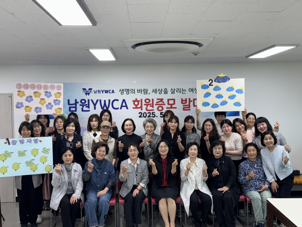³²¿øYWCA(ȸÀå³ë±æÈñ)´Â 5¿ù 16ÀÏ(±Ý) Á¤ÀÇ, ÆòÈ, »ý¸íÀÇ °¡Ä¡¸¦ ½ÇÇöÇÏ°í ±× »ç¸íÀ» Áö¿ª°ú ÇÔ²² ³ª´©°íÀÚ 2025ȸ¿øÁõ¸ð¹ß´ë½ÄÀ» °¡Á³´Ù. ȸ¿ø. ÀÚ¿øÈ°µ¿°¡, ½Ç¹«È°µ¿°¡µéÀº YWCA ¿îµ¿À» ±â¹ÝÀ¸·Î ȸ¿ø Áõ¸ð ¹æ¹ý°ú YWCAÀÇ ¸ñÀû ½ÇÇö, ½Ã¹Î»çȸ´Üü·Î ÇÑ °ÉÀ½ ³ª¾Æ°¡±â À§ÇÑ ±â¹ÝÀ» ÀdzíÇÏ¿´´Ù. ¾ÕÀ¸·Îµµ ³²¿øYWCA´Â ȸ¿øµéÀÇ Âü¿© È®´ë¸¦ ÅëÇØ Áö¿ª»çȸÀÇ Çö¾ÈÀ» ÇØ°áÇØ °¡¸ç, ÆòµîÇϰí Áö¼Ó °¡´ÉÇÑ »çȸ¸¦ ¸¸µé±â À§ÇÑ ½ÇõÀÇ ÁÖü·Î¼ »ý¸í·Â ÀÖ´Â °øµ¿Ã¼¸¦ ¸¸µé¾î ³ª°¥ °ÍÀÌ´Ù.